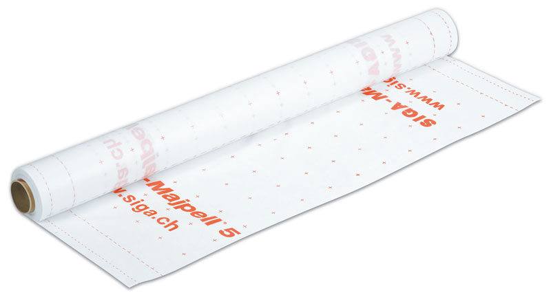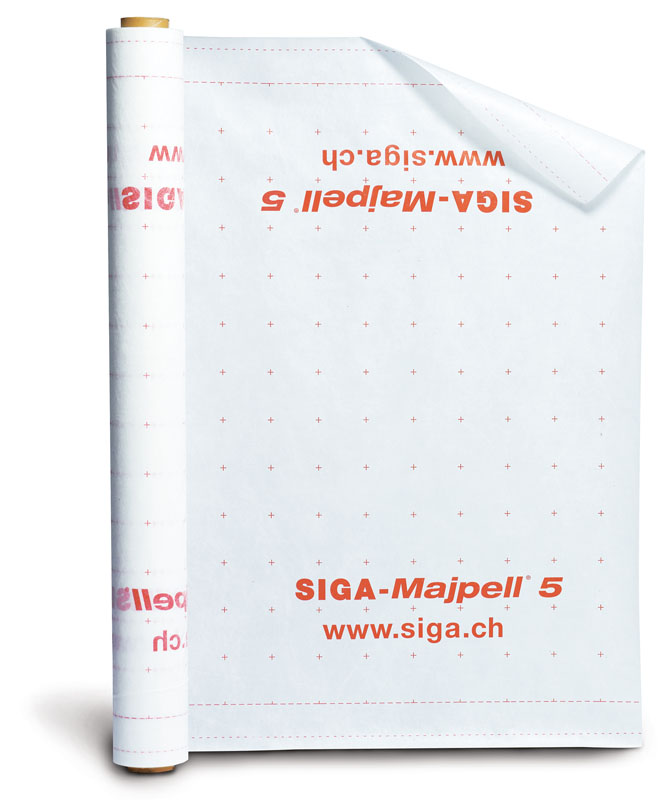 The all-purpose, easy to apply vapor control layer Majpell 5 covers different applications: Inside face of wall framing, below ceiling joists, between and above-rafter insulation and roof renovation from the outside. In combination with the approved SIGA high-performance tapes, Majpell provides for permanently airtight building envelopes for roof, wall, and ceiling structures in the interior.