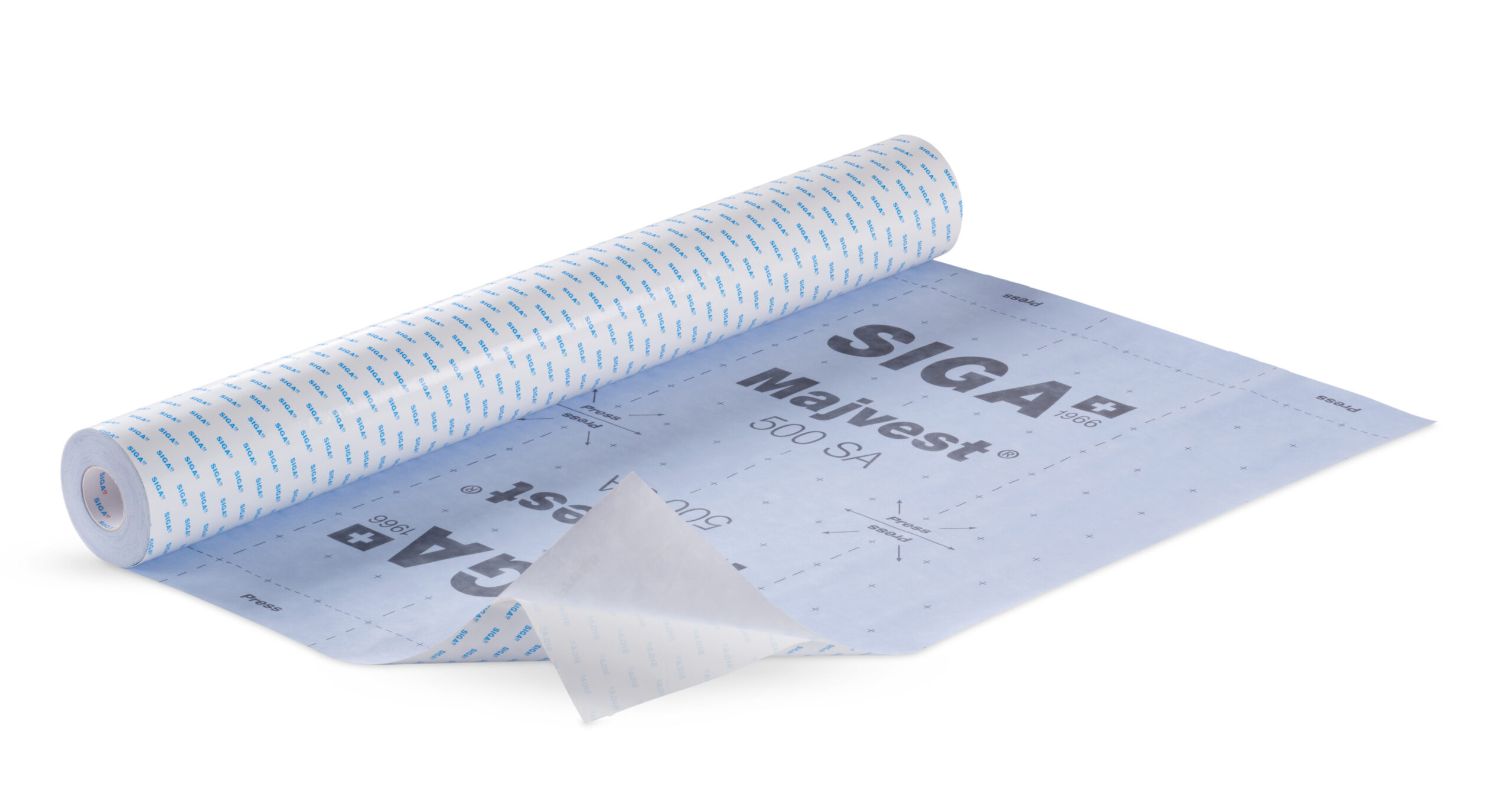 SIGA Majvest 500 SA is a sturdy and rainproof membrane that provides a permanent windtight facade on the exterior. Majvest 500 SA is Self-Adhering with easy-to-peel silicone-based backing, it is highly tearproof and flexible membrane for safe and easy application. The material is diffusion-open and permanently protects wall construction from condensation build-up. With two different widths (5 feet or 18 inches) and the practical cutting and bonding aid, it can be applied very efficiently for all closed facades, making it an all purpose membrane.
