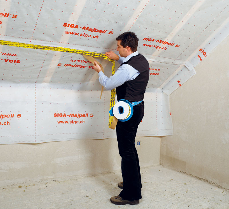 Sicrall works great in conjunction with Majrex and Majpell air barrier membranes for permanent airtight building envelopes on roof, wall and ceiling structures in the interior.